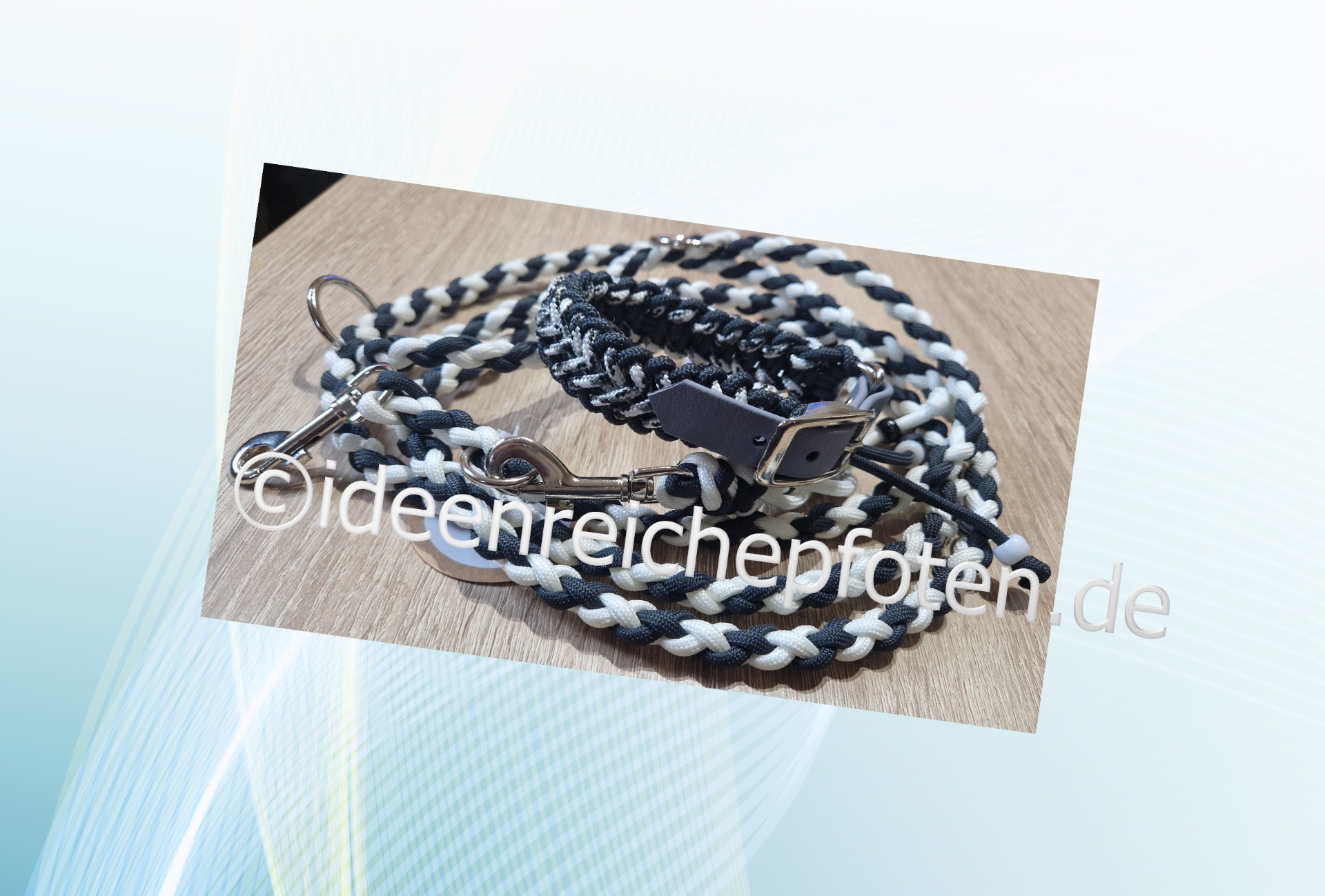 Das Paracord Halsband wurde mit den Farben Anthrazith, Gemustert-Grau erstellt.