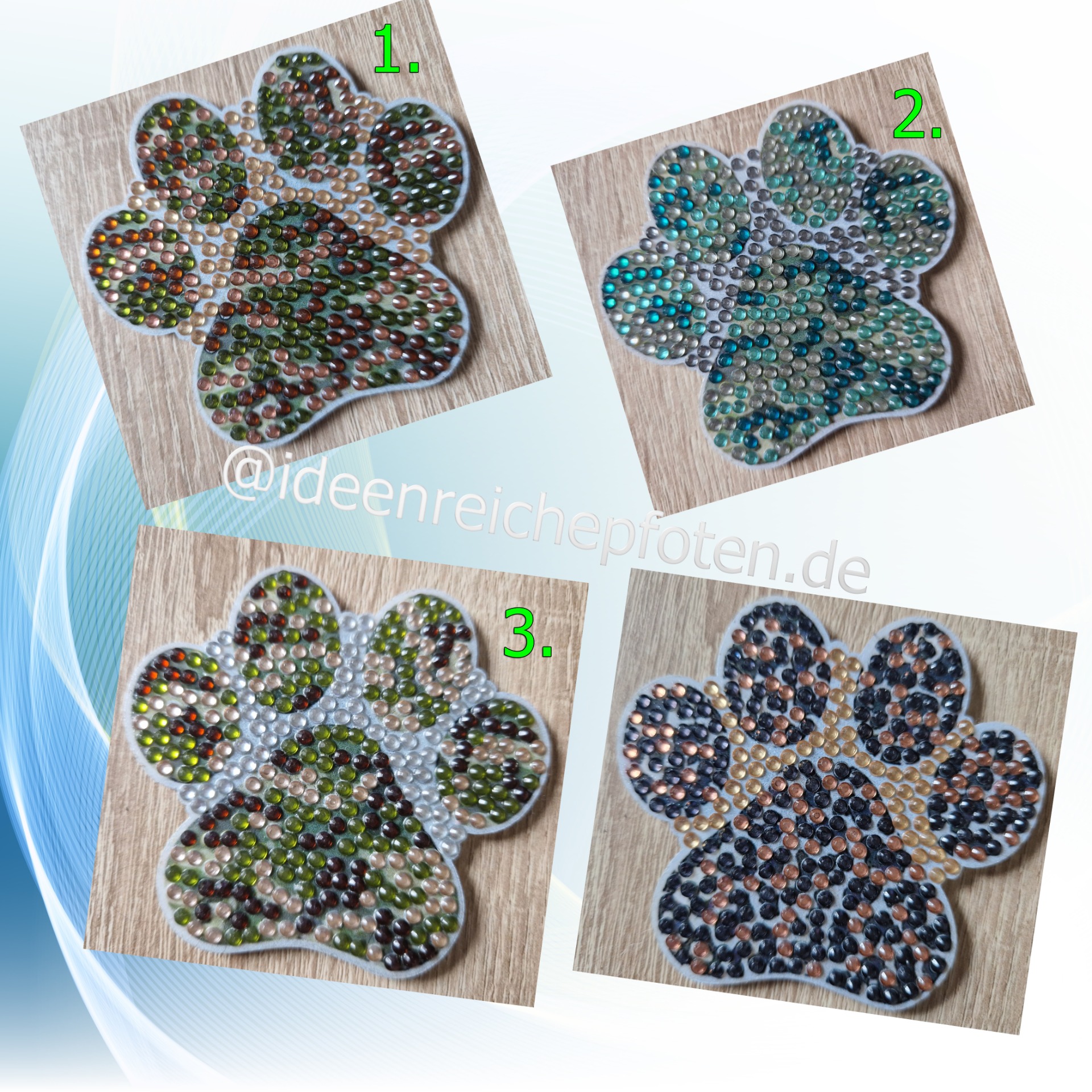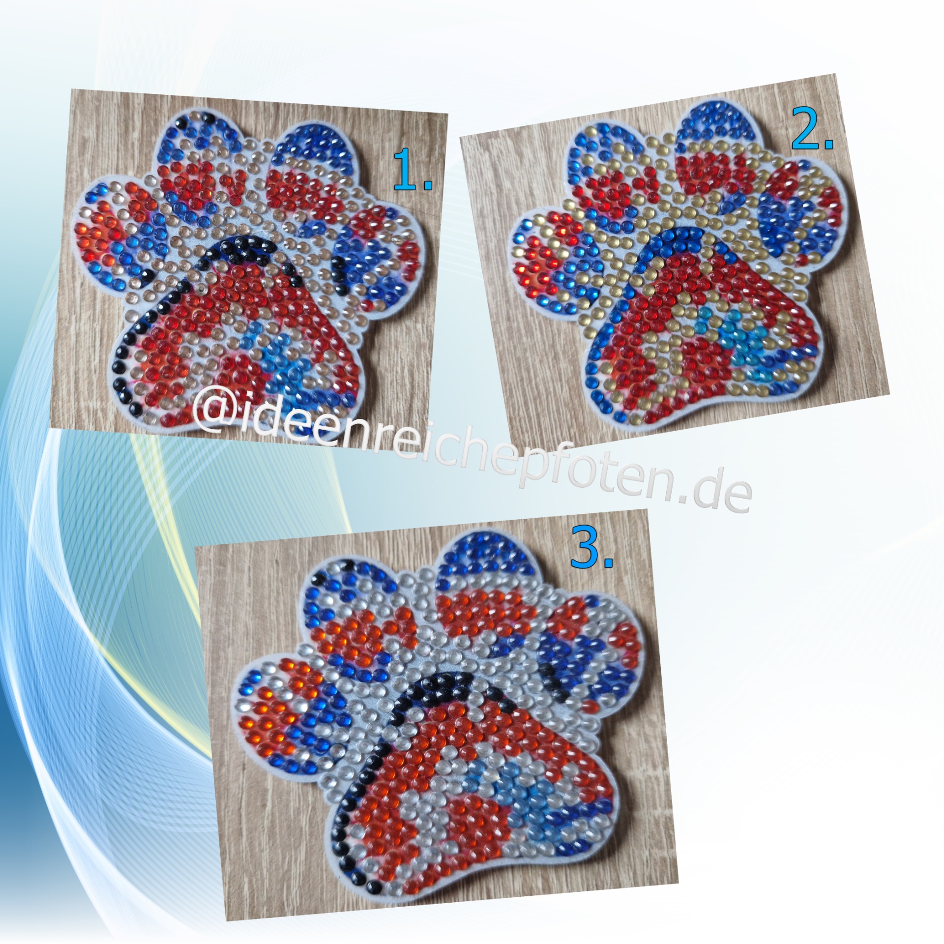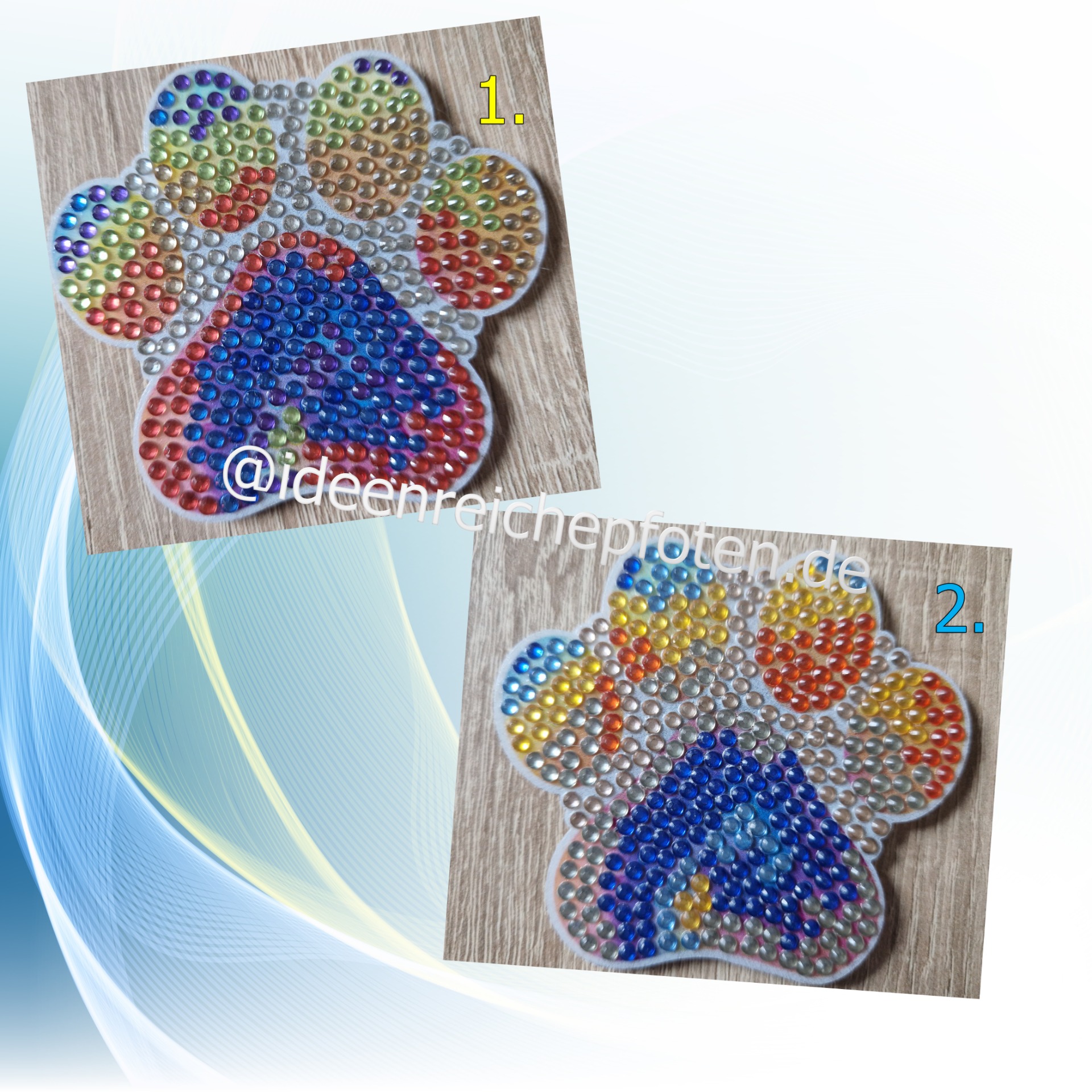 Die Pfoten Magneten mit ihrem bunten Design, sind selbst gestaltet.